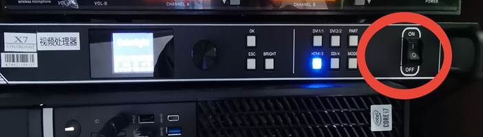 使用结束后依次关闭LED大屏电源(红色停止按钮)、视频处理器电源、电脑电源、电源时序器电源即可。
