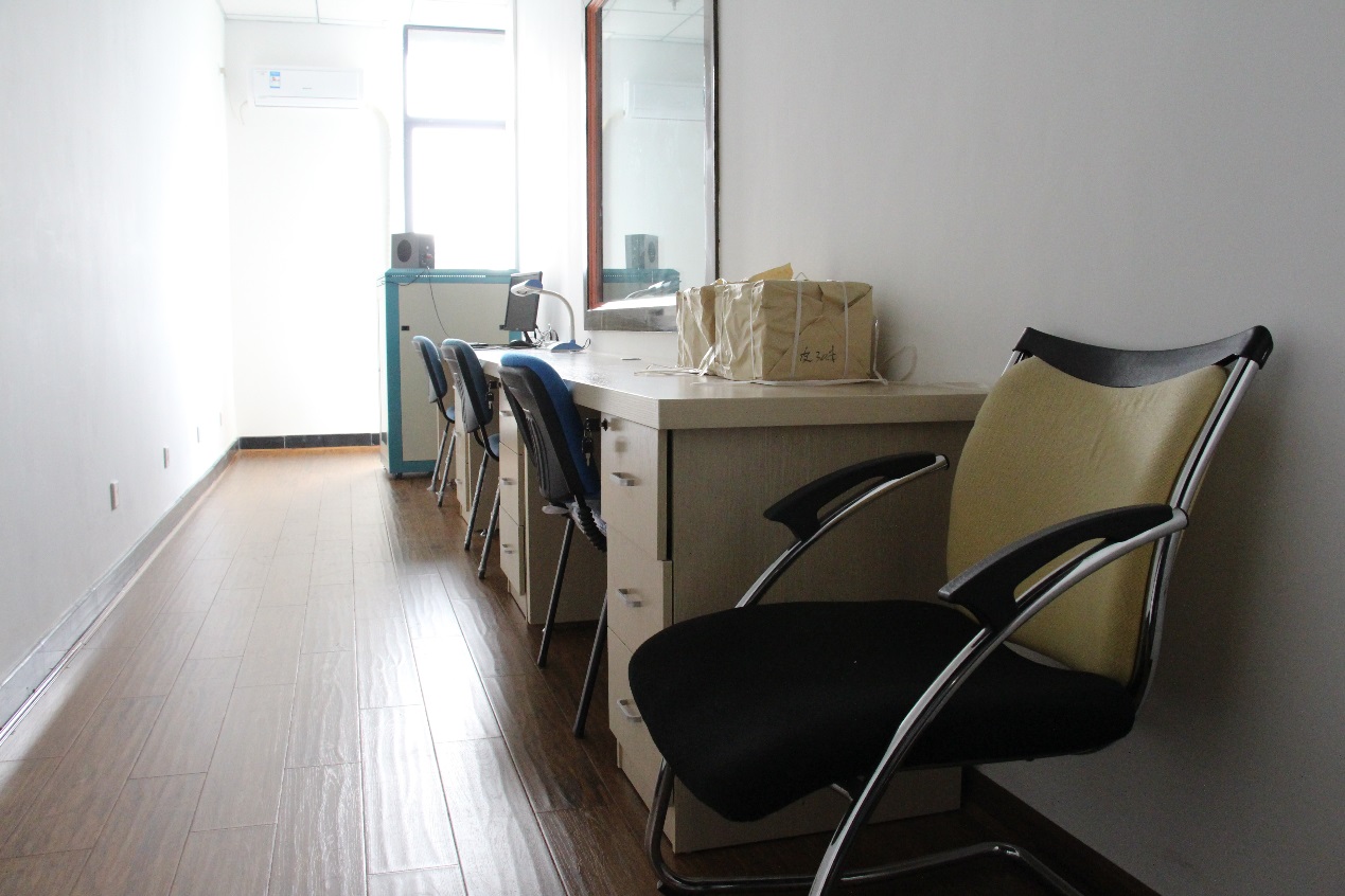 面积15平方米。机柜1个,主要设备设施有录播设备服务器和调音台、功放;3个桌子,4个凳子,空调1个。