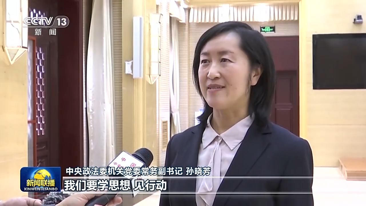 中央政法委机关党委常务副书记 孙晓芳:我们要学思想、见行动,树立正确的权力观、政绩观、事业观,增强责任感使命感,不断提高各项本领,紧紧围绕中国式现代化,谋划推进政法工作现代化。我们要按照总书记要求,查不足、找差距、明方向,接受政治体检,打扫政治灰尘,纠正行为偏差,不断增强党的自我净化、自我完善、自我革新、自我提高能力。