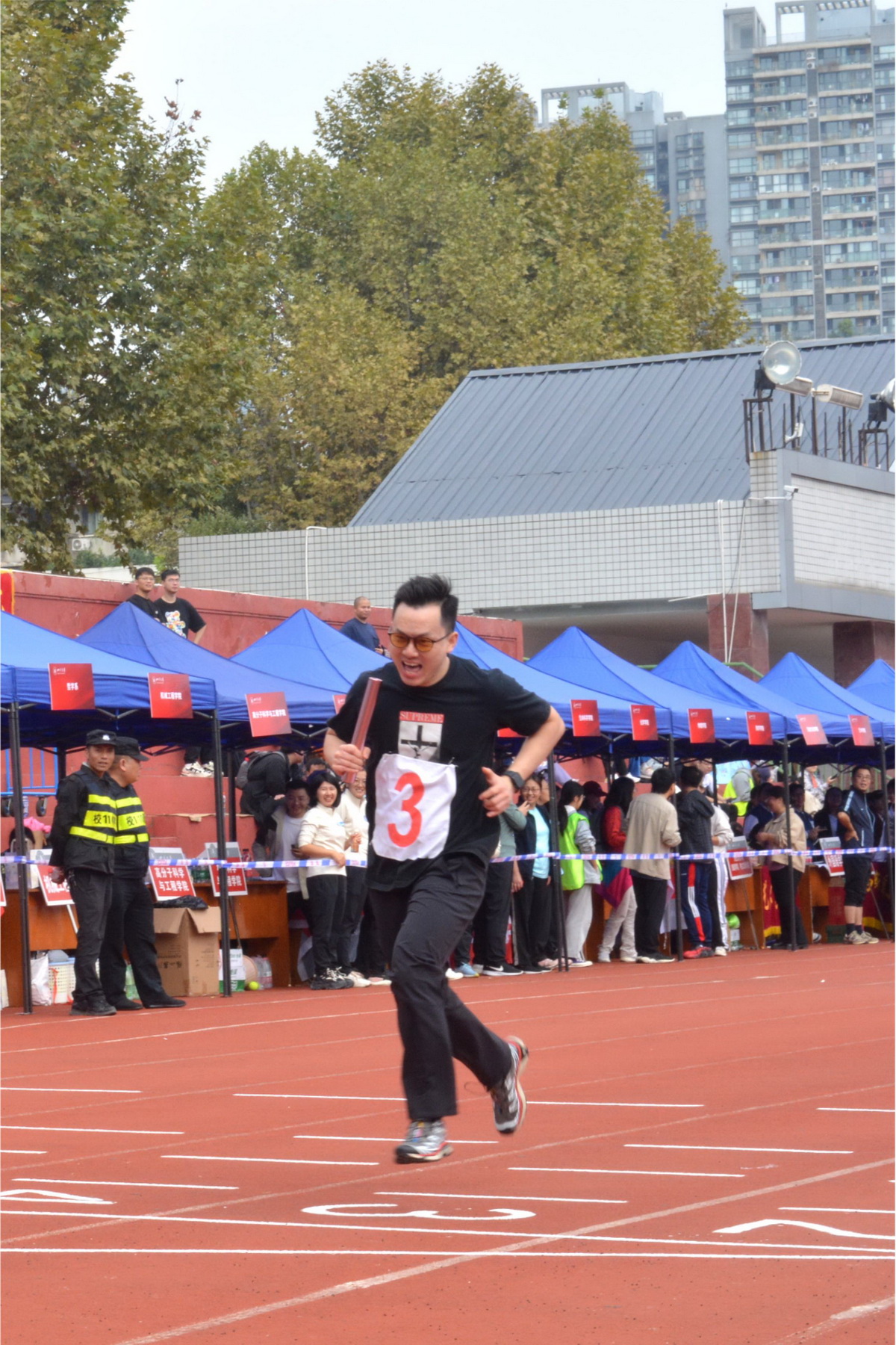文新大家庭,风采第一名。学院组织教职工参与了所有集体项目,抛球入筐、青年组和中年组绕杆踢球射门、12×60 米 接力、毛毛虫竞速、男子 4×100 米接力、女子 4×100 米接力、男女混合跳绳、拔河等,也参与了大多数个人项目,如女子 100 米、女子跳远、男子实心球、女子实心球、女子铅球等,比赛拼力,助威声喧,经过众多学院老师的激烈比拼,贺碧霄、刘娜、陈羲、高小珺四位老师荣获女子 4×100 米第九名、贺碧霄老师荣获女子跳远第一名、高小珺老师荣获女子100米第十三名的好成绩。组织的、动员的、参赛的、服务的、助威的,往来穿梭,青春洋溢,大家齐心协力,通力配合,运动会成为欢乐的集体盛会。